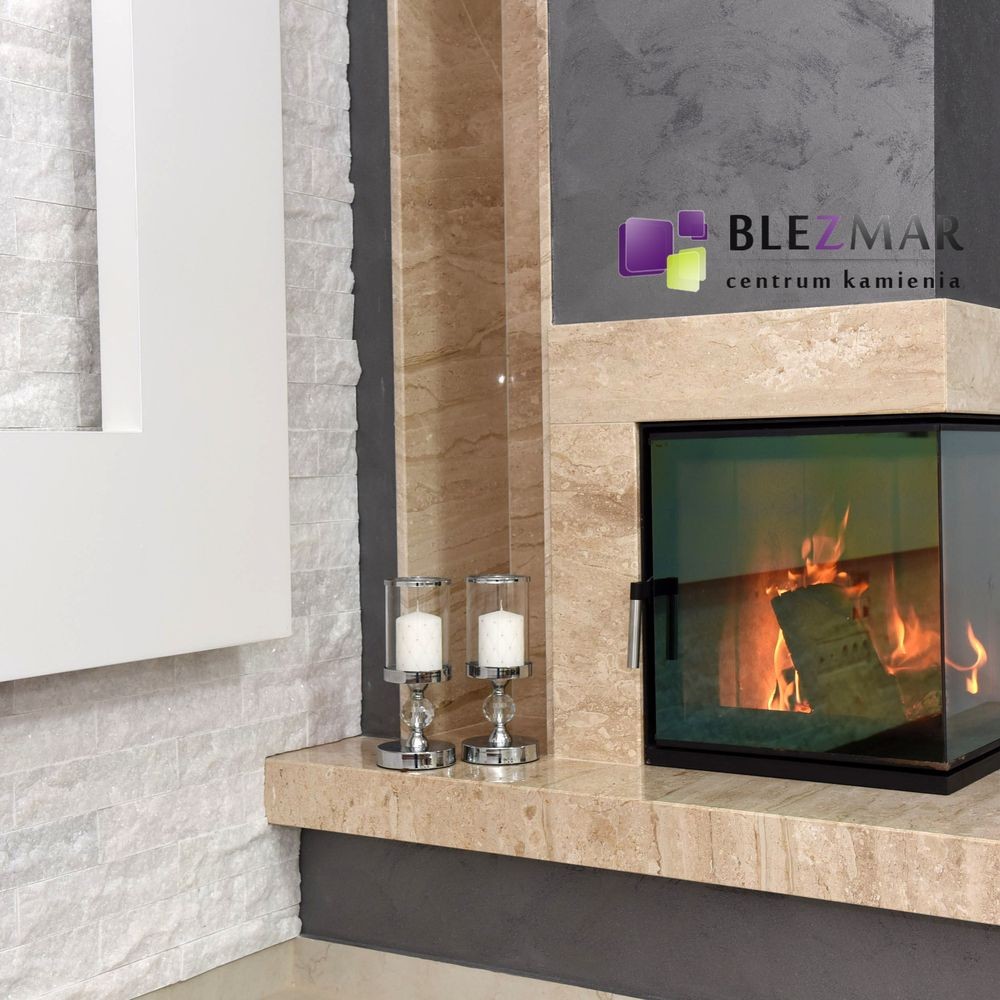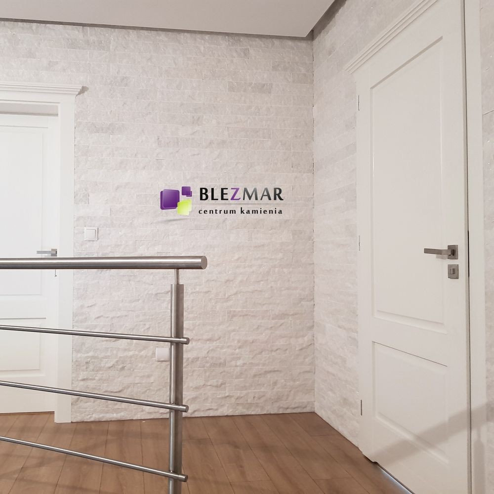 Biała płytka z kamienia naturalnego.