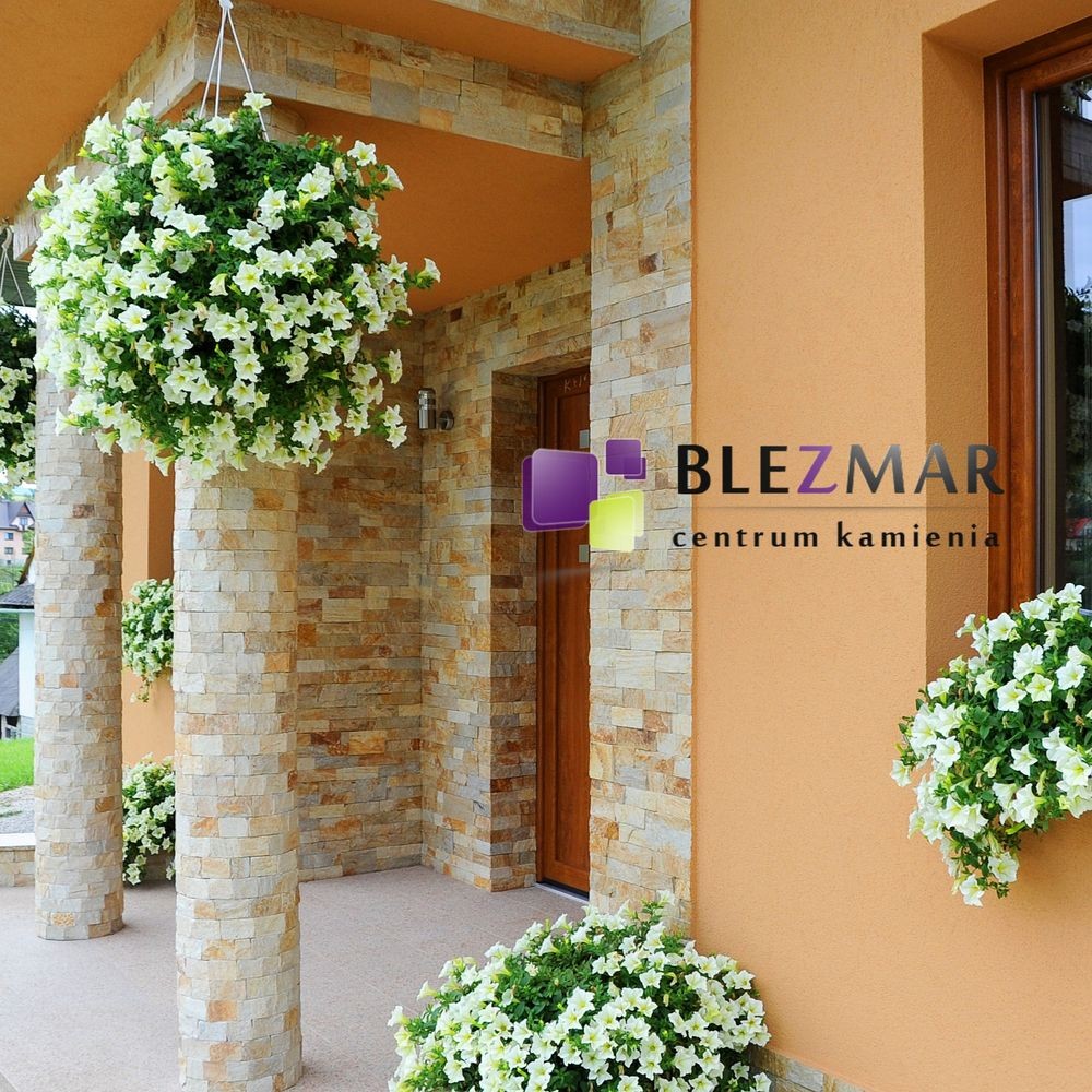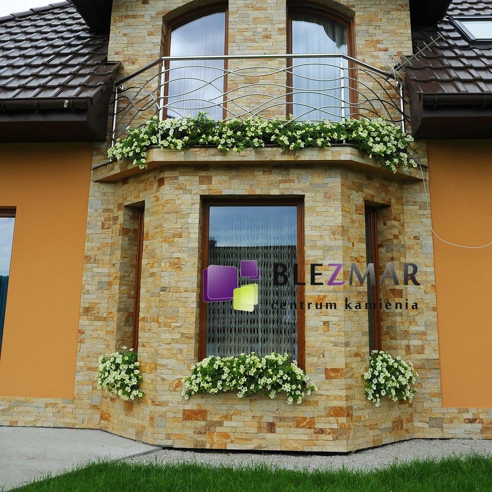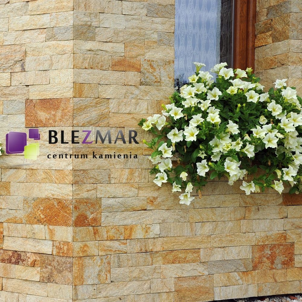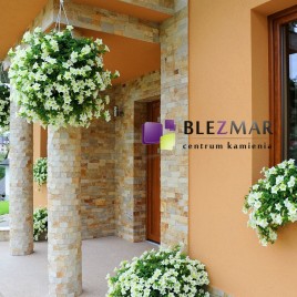 beżowo-złote paski cięte z kamienia naturalnego na elewacje