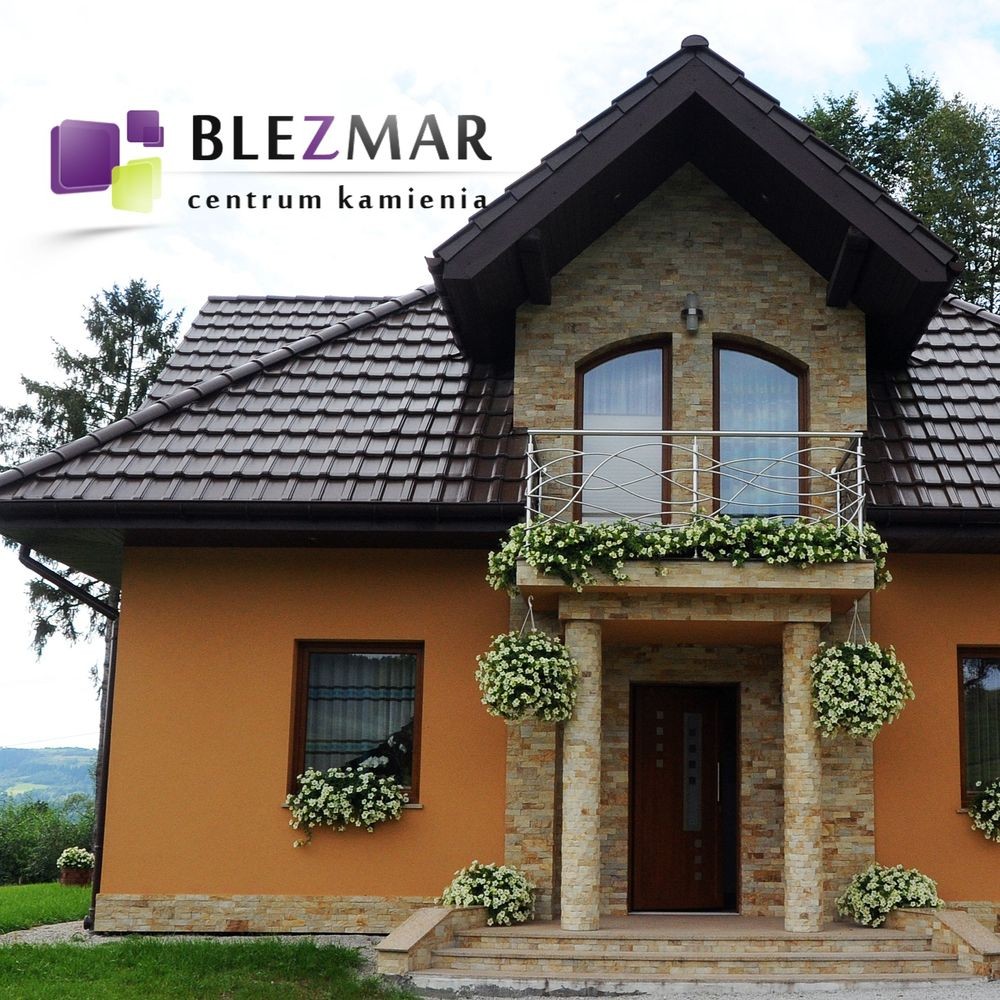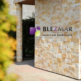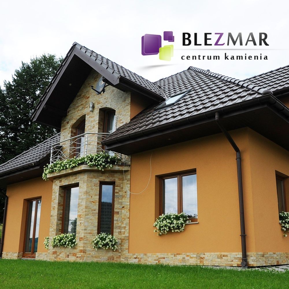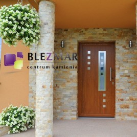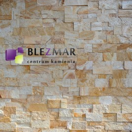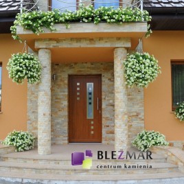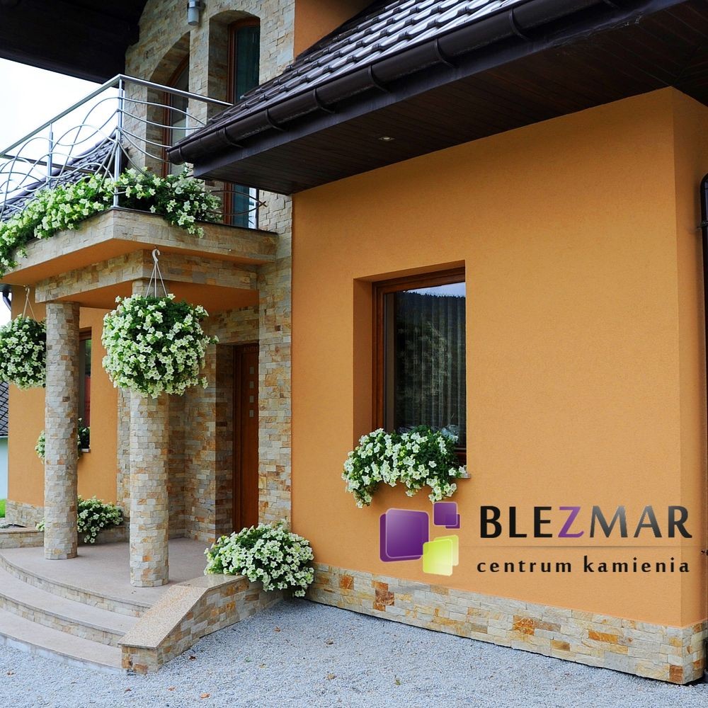 beżowo-złote paski cięte z kamienia naturalnego na elewacje