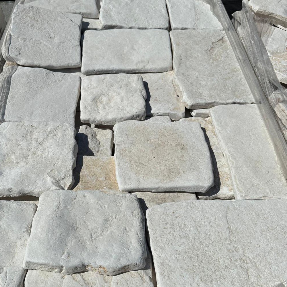 Wapień zbliżonym do prostokątów i kwadratów z obłymi kradziami.