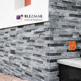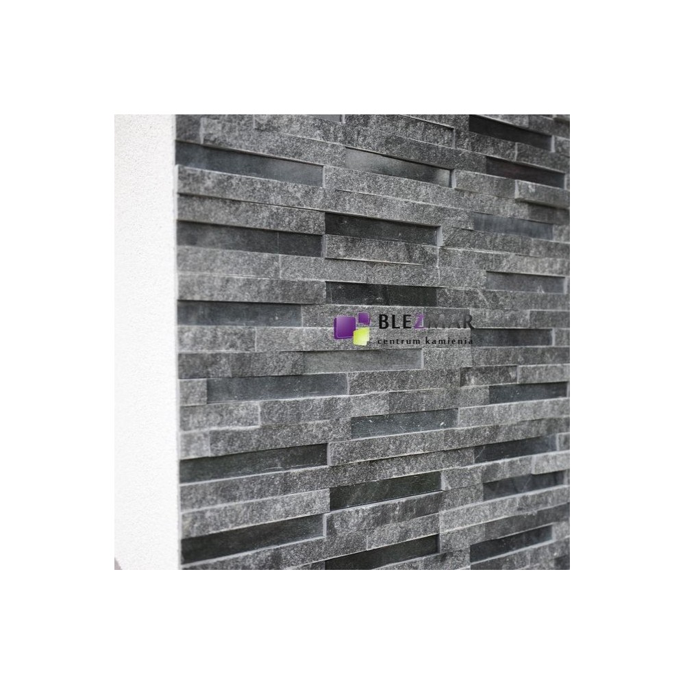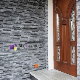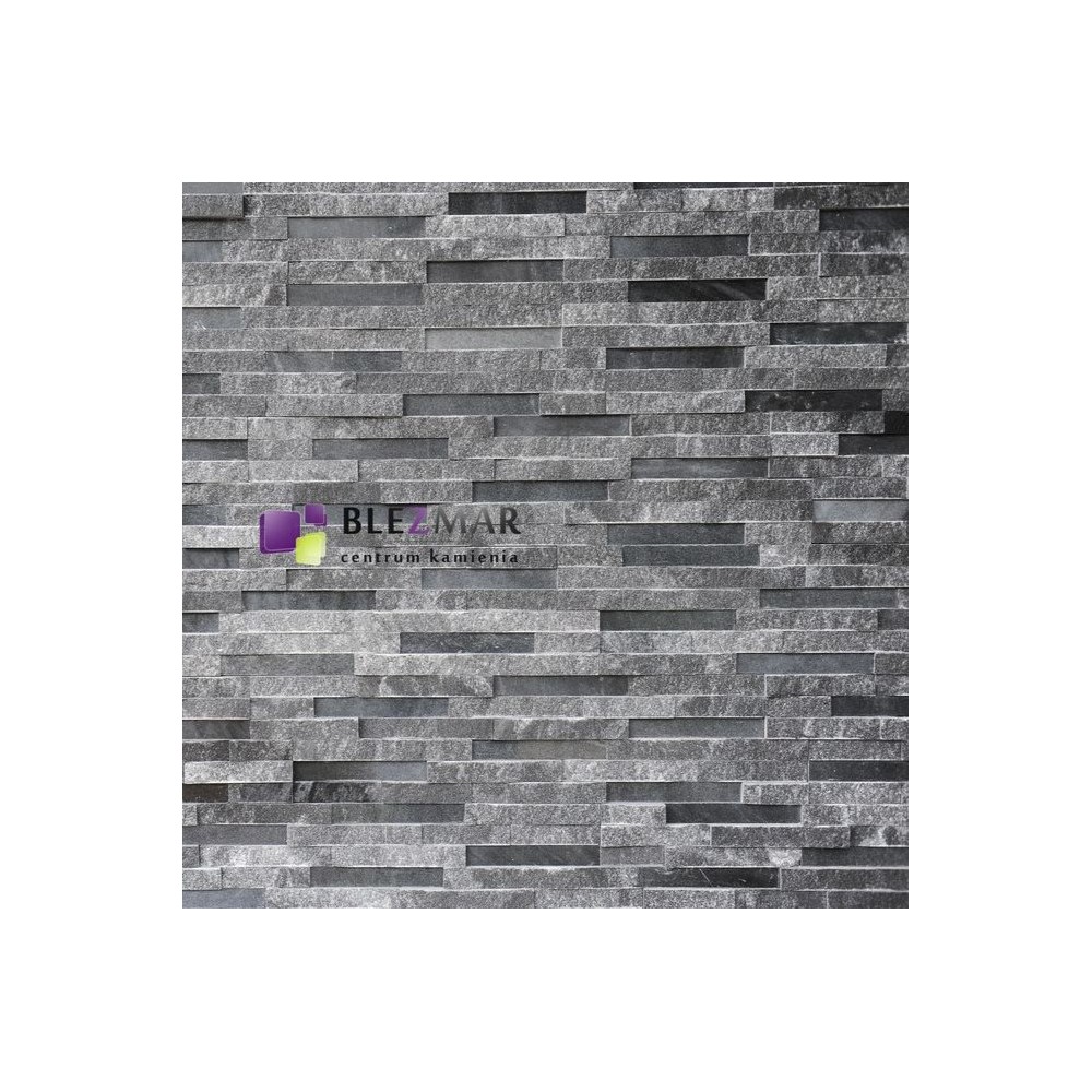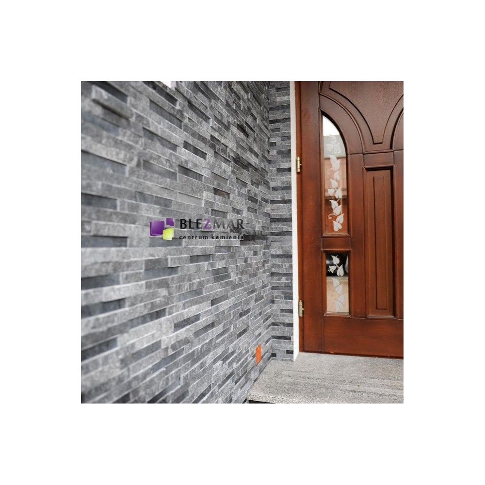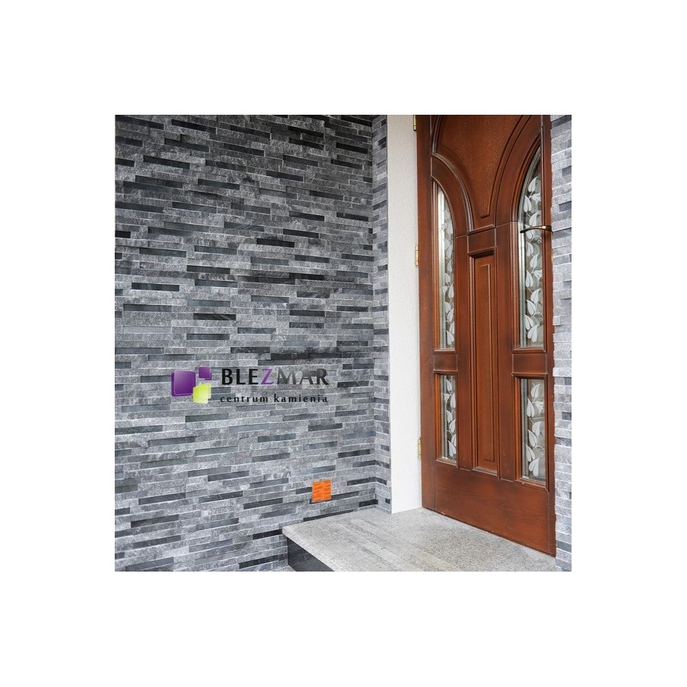 Marmurowe paski w tonacji grafitowej, łupane i polerowane, tworzą niepowtarzalny model panela