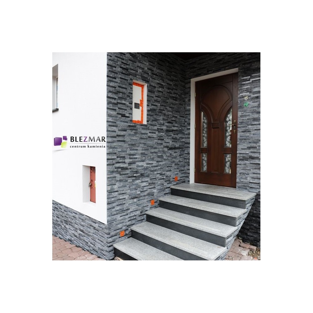 Kamień dekoracyjny PE45 Grafit z polerem, o subtelnej popielatej barwie, wplata w swoją strukturę małe marmurowe paski w tonacji grafitowej, łupane i polerowane, co nadaje mu wyjątkową elegancję. Jest doskonałym wyborem dla nowoczesnych wnętrz, które pragną podkreślić swoją wyrafinowaną estetykę. Kamień ten cechuje się gładką strukturą oraz precyzyjnie ukształtowaną formą. Delikatny odcień grafitu tworzy subtelny kontrast na tle jasnych ścian i mebli, nadając pomieszczeniu wyjątkowy charakter. Kamień dekoracyjny PE45 Grafit z polerem doskonale sprawdza się jako element elewacyjny, zarówno w roli cokołu, jak i delikatnego dodatku do całej elewacji. Jego kompozycja harmonizuje z antracytowymi oknami czy czarnym dachem, tworząc spójny i stylowy wystrój. Aby podkreślić trwałość i piękno tego kamienia, zalecamy jego zaimpregnowanie, co zapewni mu niezmienne walory przez lata. Kamień dekoracyjny PE45 Grafit z polerem - doskonały wybór dla tych, którzy pragną wprowadzić do swoich przestrzeni niepowtarzalny rafinament i trwałą elegancję.