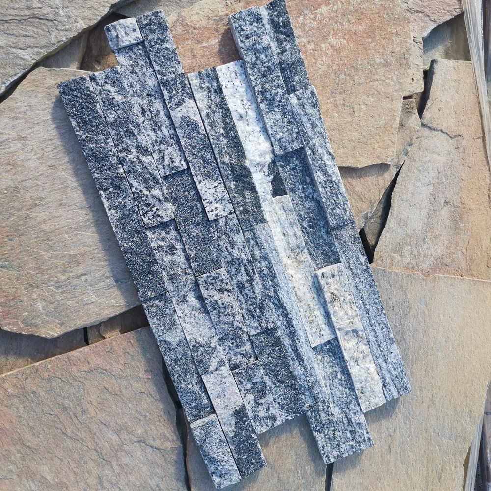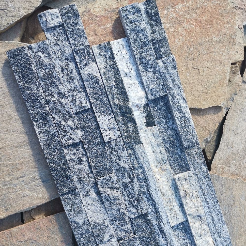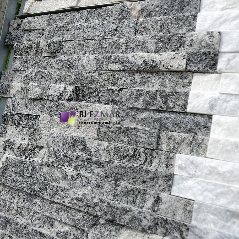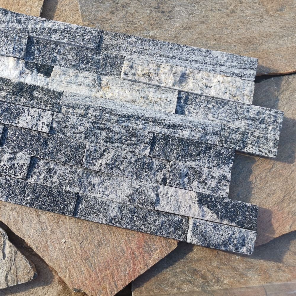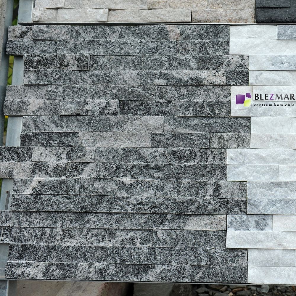 Panel z kamienia naturalnego PE06 Granite pięknie kontrastuje z jasną elewacją budynku, a dzięki swojej trwałości, można go bez problemu montować na elewacjach zewnętrznych, murach oraz dekoracyjnych ścianach wewnętrznych. Tworzone są poprzez złączenie kleju z drobnymi paskami kamienia naturalnego, co sprawia, że panele dekoracyjne są łatwe w transporcie oraz montażu. To doskonała alternatywa dla tradycyjnych tynków elewacyjnych, oferująca lepsze właściwości termoizolacyjne i większą odporność na czynniki atmosferyczne.