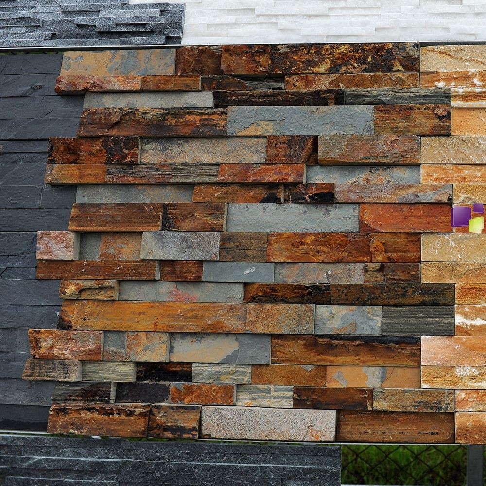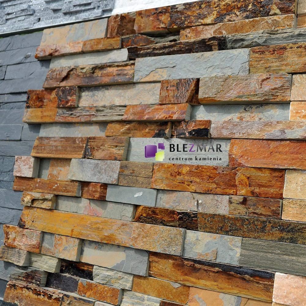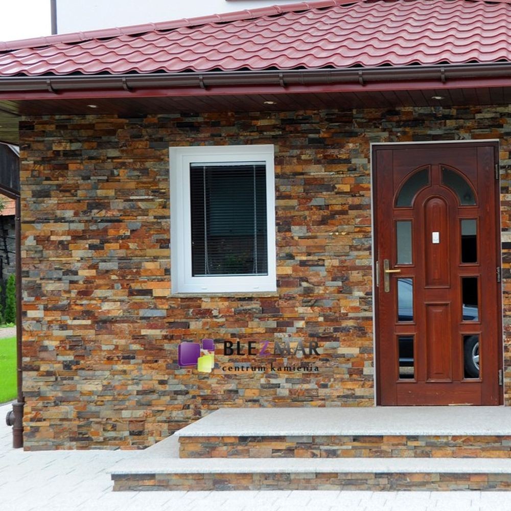 Szaro-rudy panel elewacyjny z kamienia naturalnego