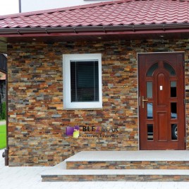 Panel z kamienia naturalnego PE05 Mexicana o kolorze szaro-rudym to doskonałe rozwiązanie na elewację, łączące elegancję i trwałość. Jego wyjątkowy odcień nadaje bryle budynku wyrazisty, naturalny charakter, tworząc jednocześnie harmonijne połączenie z otoczeniem. To idealna propozycja dla tych, którzy poszukują estetycznego, trwałego rozwiązania do wykończenia zewnętrznych ścian swojego domu czy budynku. Idealnie nadaje się również na obłożenie murów, ogrodzeń oraz aranżację wewnętrznych ścian domu.
