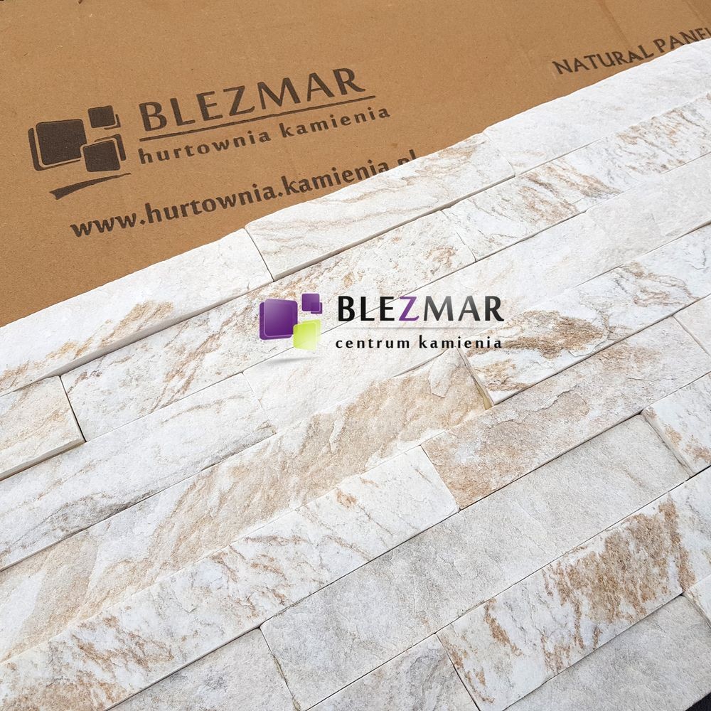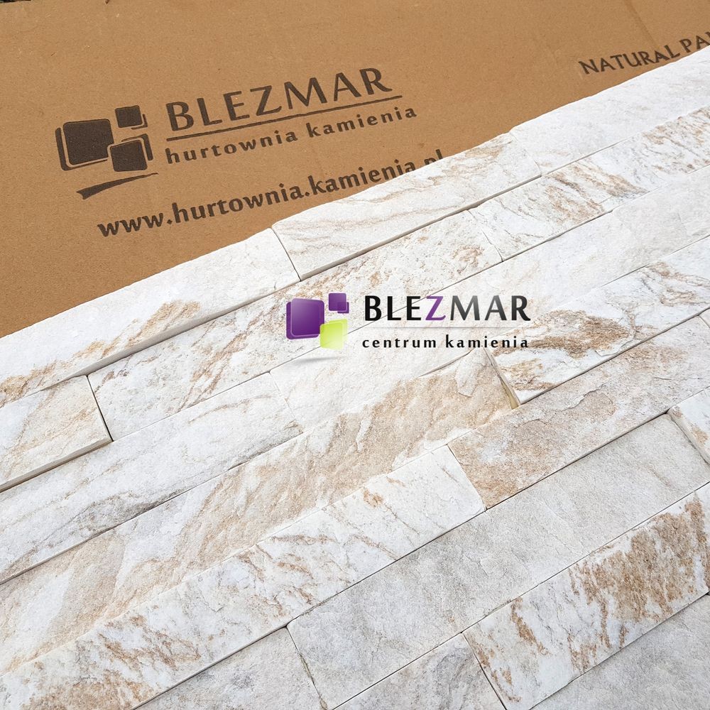 Panel z kamienia naturalnego o kremowo-złotych przebarwieniach.