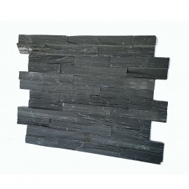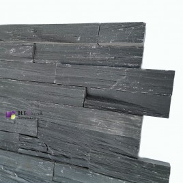 Kamień łupkowy w kolorze czarnym PE16 Tores wnosi głębię do architektury. Jego intensywna barwa stanowi kontrast, dodając bryle budynku nowoczesności i tajemniczości. Panele ścienne z kamienia można używać praktycznie wszędzie, zależnie od preferencji mieszkańców, projektantów lub inwestorów. Mogą one doskonale zdobić elewację w okolicy okien, bram garażowych, drzwi, a także wnętrza pomieszczenia.