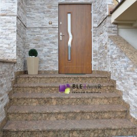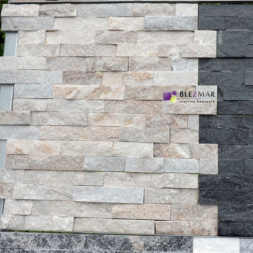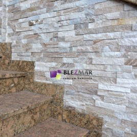Beżowa płytka z kamienia naturalnego, lekko mieniąca się do słońca