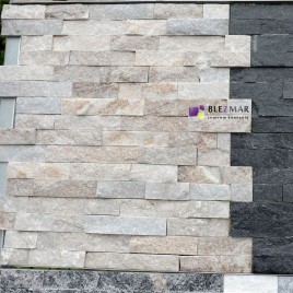 Panel ścienny PE04 Wooden wykonany z kamienia naturalnego, a dokładniej z beżowego kwarcytu. Kamień ten jest bardzo trwały i odporny na uszkodzenia mechaniczne, a jego kolorystyka dodaje pomieszczeniu elegancji i stylu. Panel ma wymiary 55x15x1,5cm i jest idealnym rozwiązaniem dla osób, które cenią sobie wysoką jakość i niebanalny design. Można je zastosować na całej powierzchni lub jako ozdobne detale, zależnie od preferencji. Paski kamiennego wykończenia doskonale sprawdzają się jako naturalne cokoły do różnych wnętrz, dodając im charakteru i elegancji. Uniwersalne i ponadczasowe, idealnie komponują się z innymi materiałami, takimi jak szkło czy drewno.
